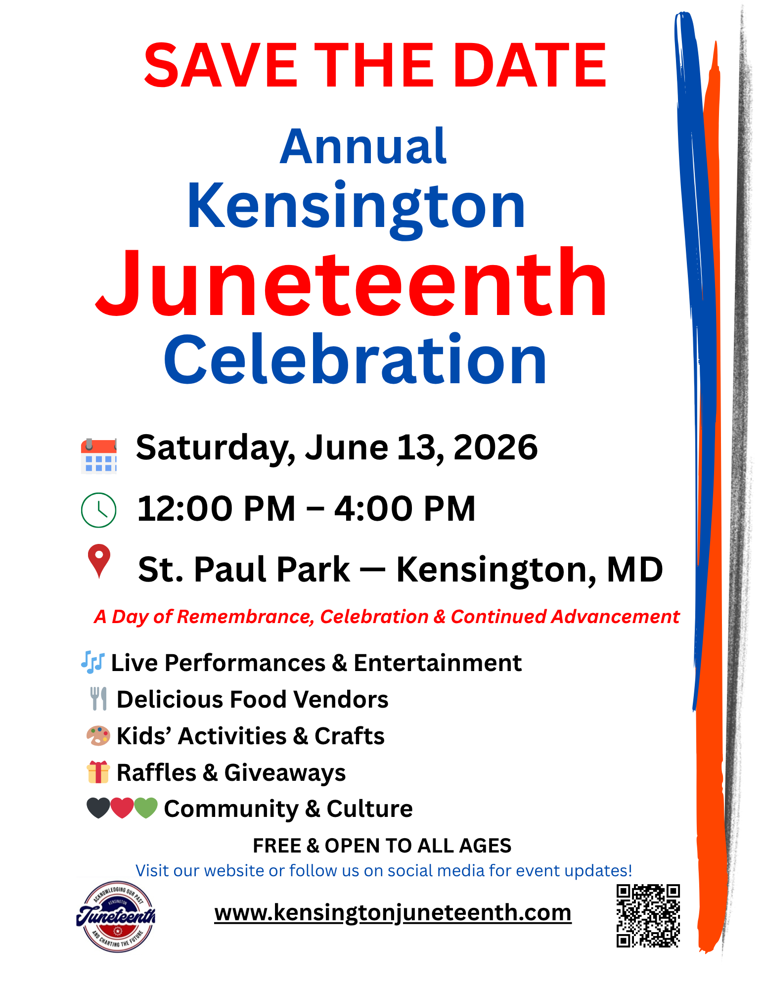 Join us for the 5-Year Anniversary of Kensington’s Juneteenth Celebration — a day of unity, history, music, food, and joy.